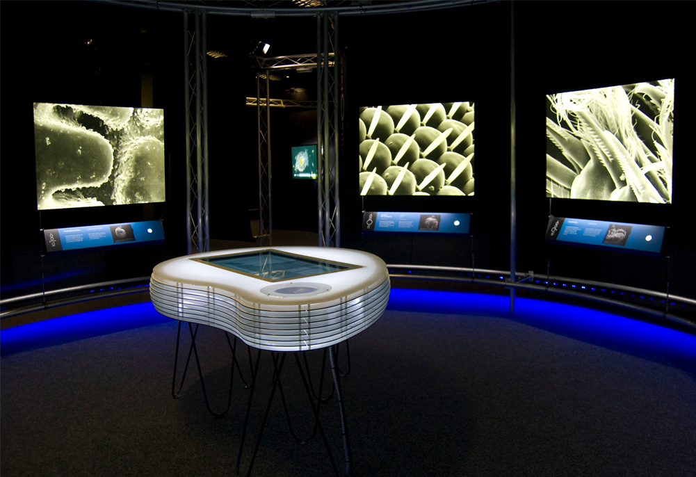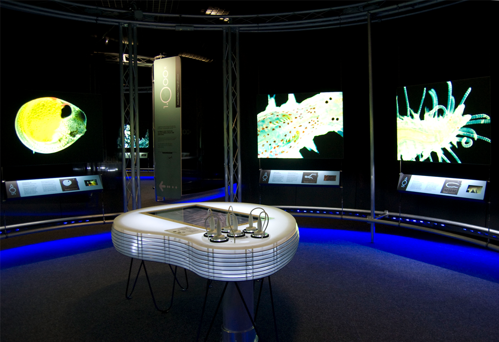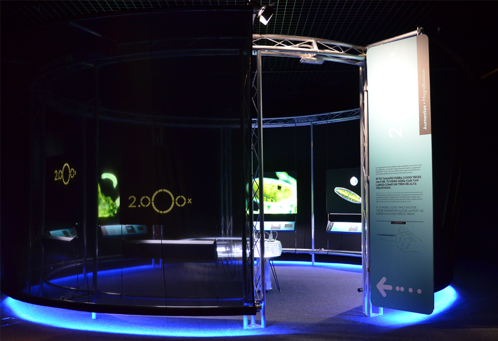 Exposición multimedia (fotografía, vídeo e interactivos) producida por la empresa Expografic, s.a. en la que se introduce al visitante en el mundo microscópico a través de distintos módulos, cada uno de ellos representante de un nivel de aumentos.